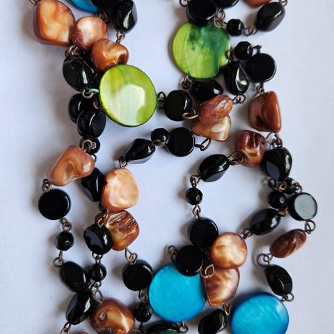Ganske langt kjede i jordnær brun sten . Følg intuisjonen når det gjelder stener. Hentes i Tønsberg eller postes !