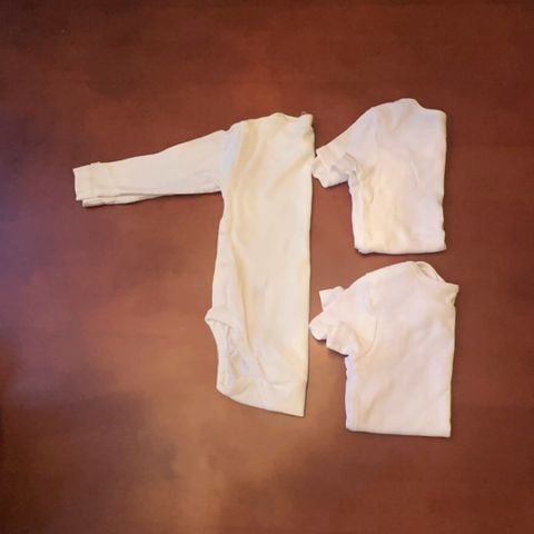Klespakke som inneheld 5 kortarma bodyar og 1 langarma body. Den langarma bodyen er frå newbie, og er som ny. Dei andre er frå H&M og Cubus.