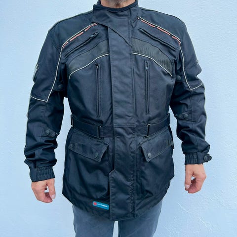 Frank Thomas Gore tex i str L, dette er en tynn mc bukse. Veldig lite brukt, men innerfôret har revnet i skrittet( se eget bilde)