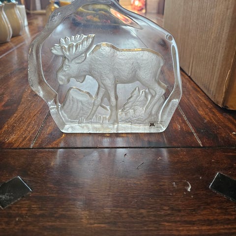 Hel og fin bokstøtte med elg fra Magnor glassverk
