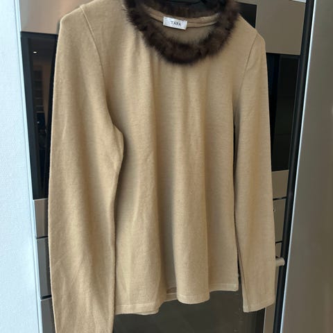Supermyk genser fra Cubus i en deilig kvalitet. Tynn og stretchy i stoffet. Jeg har klippet av lappen inni denne hva den er laget av, men jeg er ganske sikker på det er akryl. Aldri vert i bruk og fremstår som ny fra butikk. Fargen er mørk grå. Finere i virkeligheten enn på bilder, da det er vanskelig å ta gode bilder av mørke klær. Normal i størrelse. Med litt puffermer.