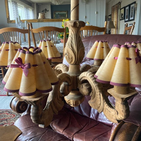 Gammel troll lampe…noe redesignet da det en gang var en vegg lampe. Har nå blitt en flott bord lampe. Artig trollgubbe som hogger ved. Skjerm i svineblære. Total høyde med skjerm 41 cm. Total bredde med sokkel 38 cm. Artig og sjeldent ekemplar av arten. 😊 god gammel trekunst / treskjæring. Ikke signert, så vet ikke hvem som har laget denne. I flott stand. Flott til hytte på fjellet eller i skogen……eller hjemme ? 😊 Lampeledning med bryter.