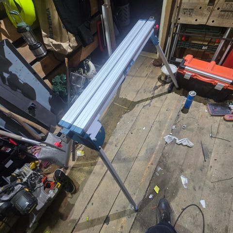 Sagstativ fra Luna, mangler hjulene til å dra emnet langs, samt de som låser forlengeren.
