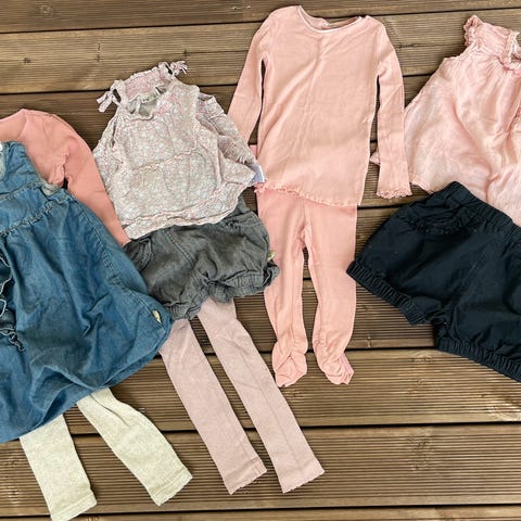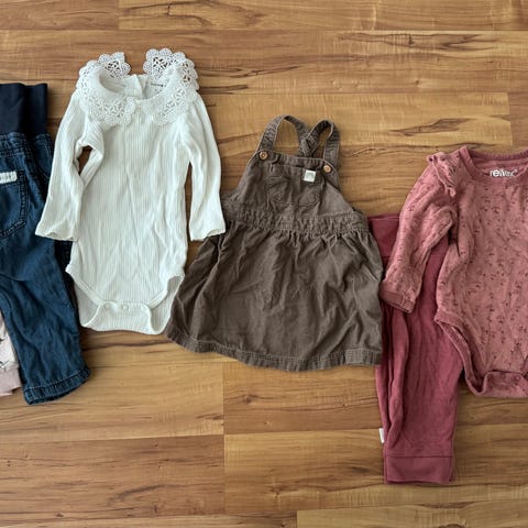Nameit langermet body, deminkjole i 100 prosent organisk bomull fra C, og et hårbånd med sløyfe og strikk til regulering av størrelse.
