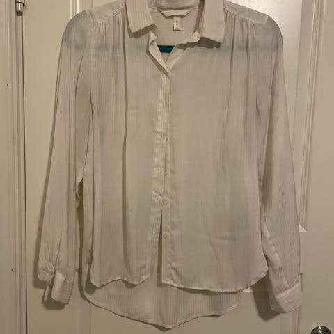 Pen bluse fra H&M i str. 36. Har dessverre klippet bort lappen på denne, men har en lik i hvitt som også er str. 36. Veldig fin bluse i en kjempefin grønnfarge.