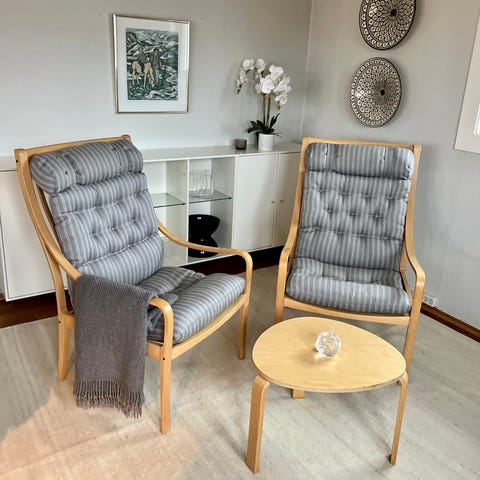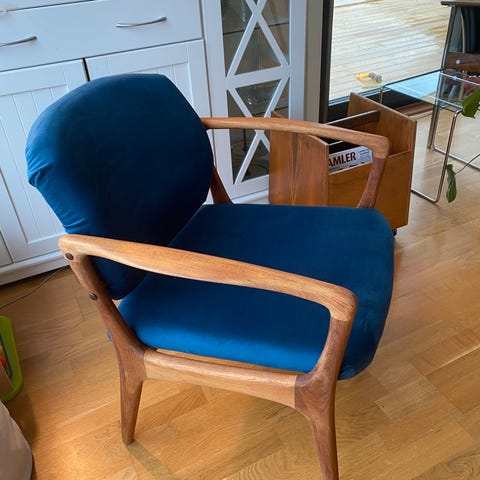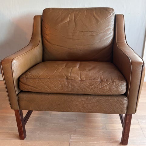 Selges rimelig pga lite hull i skinnet på ryggen. Det kan sys og er ikke synlig hvis stol skal stå mot vegg.
