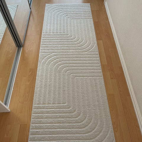 Juletre-teppe. Lin med sort kant i skinn. Grått stjerne-dekor. Ingen slitasje
