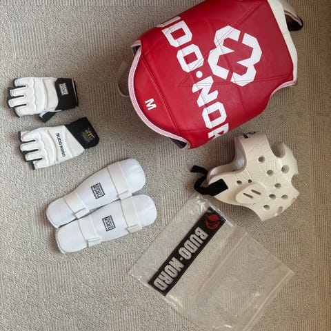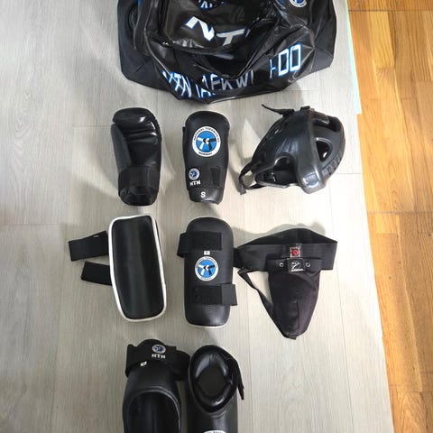 Kampsport utstyr som er pent brukt og noe av det er også nytt. Alt er i størrelse M av merket Wtf (World Taekwondo federation).
