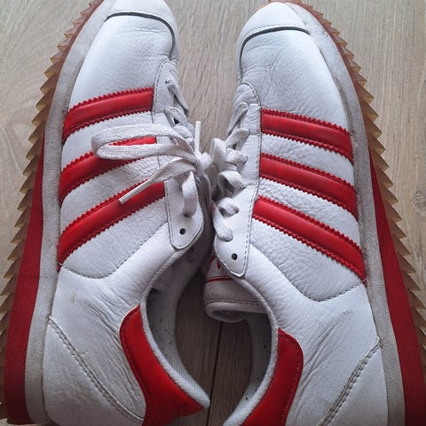 Adidas skoene kom « frem fra glemselen « ved flytting. De er så vidt blitt brukt, og fremstår derfor i meget god stand.