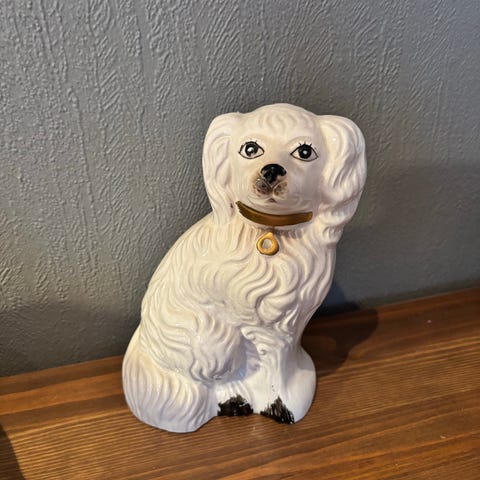 Stor flott porselen figur selges. Det er en liten skade på den ene hånden,noen fingre er kortere. Selges billig