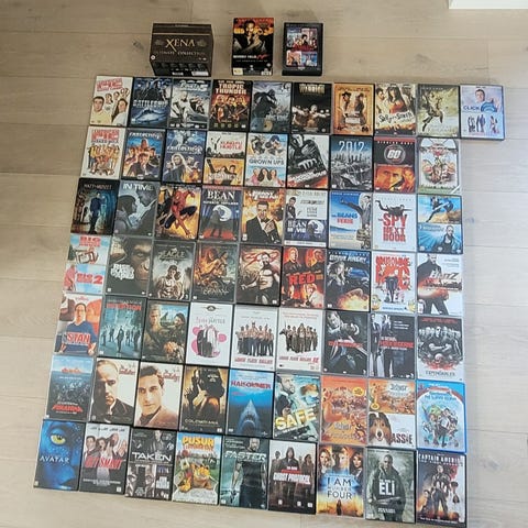 Hver boks inneholder 50 filmer hver. Her finner du alt fra eldgamle scifi filmer som du kan se i bakgrunn på star trek til kalkuner og til klassikere og kultfilmer. Noe har hysterisk dårlige effekter og skuespill, andre er små perler. Mye filmhistorie! Pris per boks når kjøper alle 3. Bare en boks for kr 90.