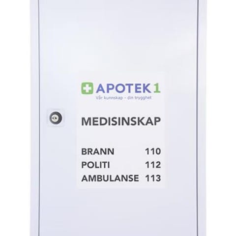 Låsbart medisinskap fra Habo av pulverlakkert elforsinket stål. Skapet har to hyller til oppbevaring av medisiner, plaster etc. Leveres med to nøkler. Skruer for montering følger ikke med.