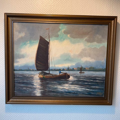Gabr Dahl på plate Oljemaling fjell og fjord landskap 33×41 Trenges Rensing