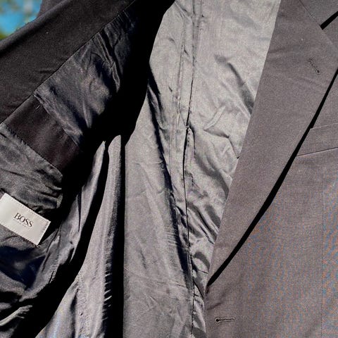 Kort frakk fra Hugo Boss som ikke er brukt mer enn én gang. Ble kjøpt for stor, og ble dessverre aldri passe. Vil si den er litt stor i størrelsen.