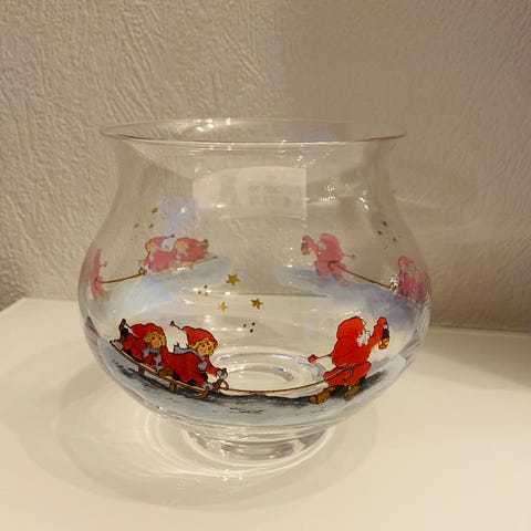 Pen lyslykt i god stand. Høyde 12 cm, diameter 12 cm.