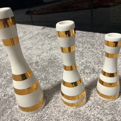 3 stk selges samlet. 20 cm +16 + 8,5 cm høy. Den høye har noe skår på innsiden. Se bilde. Ingen kvittering.