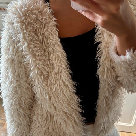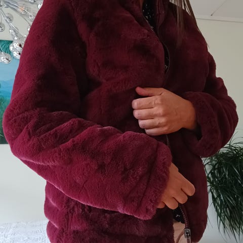 Ubrukt støvrosa cardigan /lett jakke i mykt pusete teddystoff. Str 38