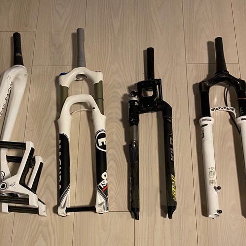Had fall from car rack and sanded side, it’s cosmetic, only one small scratch upper part of stantion works well, just looking odd, no axle