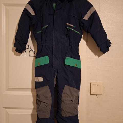 Litt stor i størrelsen, minstemann brukte den i to sesonger og vokste ut av den nå ved 93 cm høyde. Han passer nå godt i samme dress i str 90.