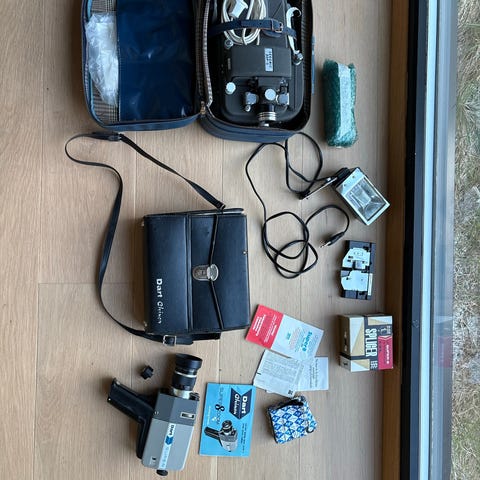 Med følger en del objektiver, håndtak, kameraveske og diverse greier.