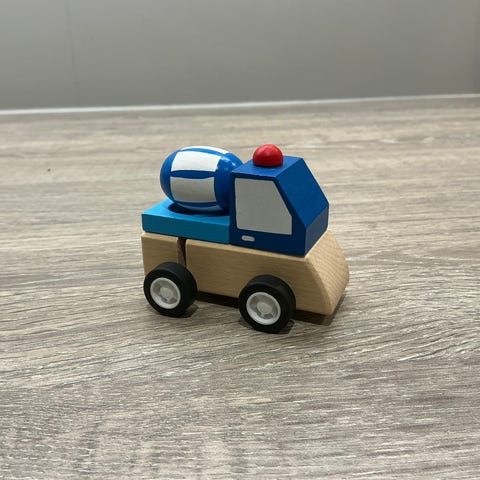 Betongbil som er ca 25 cm lang. Lite brukt og kun inne av 1 barn. Passer til babyer og små barn. Selges til 50 kr.