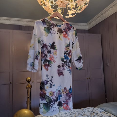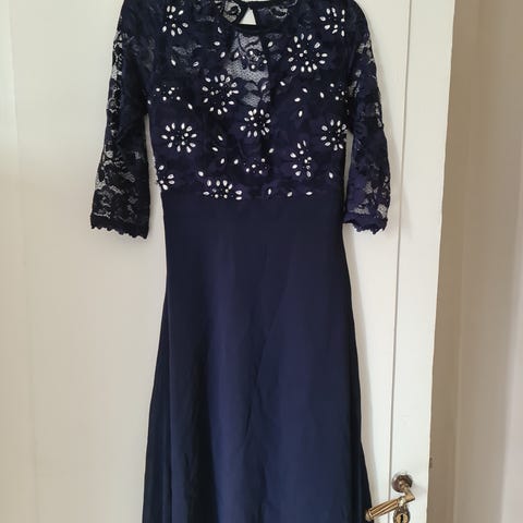 Lite brukt kjole fra little mistress, med halvlange armer og blonder øverst. Str 36.