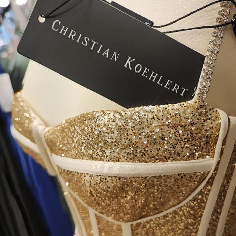 Dette er en nydelig glitrende ball eller galla kjole.🪩✨Den er i en rosegull farge og har en splitt i. Man ser ikke splitten med mindre man tar lange skritt. Den har blitt brukt kun 2 ganger. Den kan passe alt fra xs-m siden det er snøring bak på kjolen. Kjolen lå akkurat fint på bakken da jeg er 163 og gikk med ca 8-9cm høye heler.