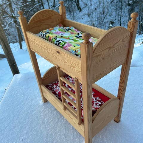 KUKU DUKKESENG, NATURAL - bunnen har en ødelagt pinne, se bilde. En liten flekk på madrassen som kan vaskes bort, se bilde.
