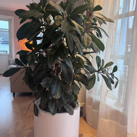 190 cm høyde. Mistet 4-5 blader i vinter. Virker frisk. Diameter 60 cm. Selges med potte