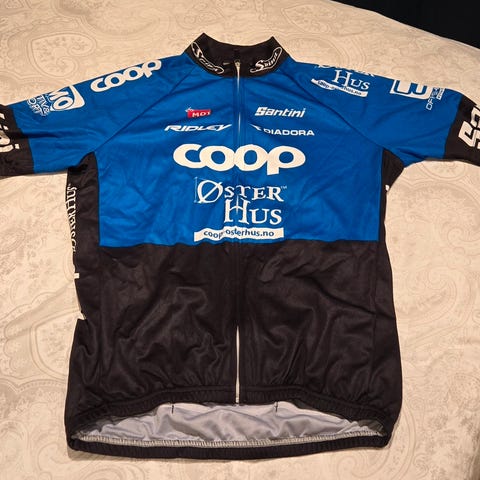 Sykkeldrakt. Er godt vasket. Lite brukt de siste årene. Cirka 20 gammel. Har ligget minst 10 år ubrukt.