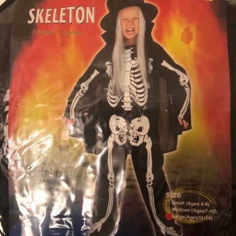 Halloween Karneval skjelett kostyme blonder str 134
