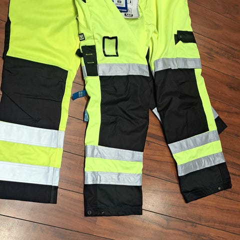 Wenaas arbeidsdress i størrelse XL, farge grå med svarte detaljer. Dressen er laget for arbeidssituasjoner og har flere lommer, justerbart belte i midjen og forsterkninger på utsatte områder. Materialet er slitesterkt og egnet for bruk i krevende arbeidsmiljøer.