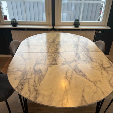 Pent brukt spisebord fra Tradmax med seks stoler selges