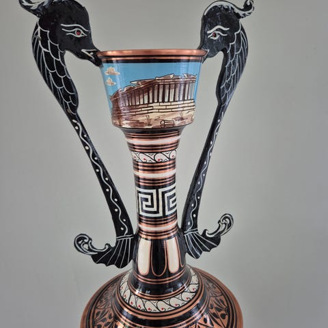 2 store gullklokker i plast Ø 15, H 15. Retro. Pen dekor nede på klokkene. Kr 45 pr stk. De er pent brukt og har ikke skader. SAMLET kr 75. Sendes mot porto.