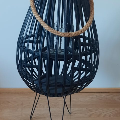 2 stykk fine store lykter av tre. Kun stått i showroom. Litt merker/avflasset som fint kan males over, se bilde. Fine med elektriske lys oppi eller store blomster. Høyde ca 60 cm.