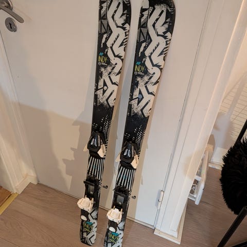 K2 Indy Fdt 7.0 Ski inkl. Bindinger, 136 cm selges for 900,-. Helt ny og ikke brukt da de ble for lange for gutten her.