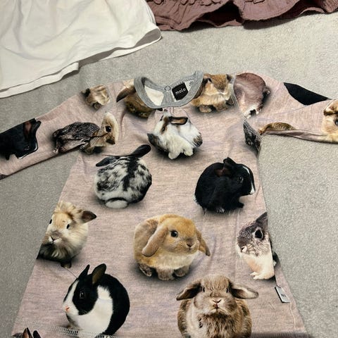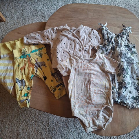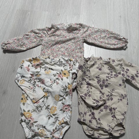 🩷 Rosa med papegøyemønster og kort arm, str 62.