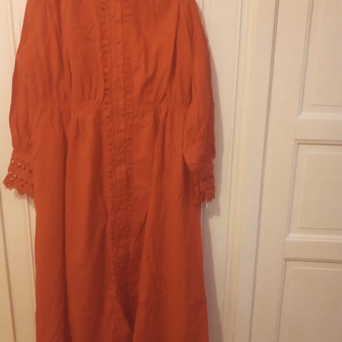 Flott rød kjole fra Y.A.S med lange ermer. Julekjole fin til julebord? Nydelige detaljer, knapper helt opp, strikk i midjen. Ny og ubrukt, med lapp på. Størrelse M.