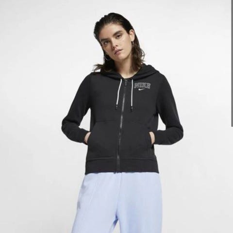 Hoodie laget av mykt, fleecy stoff med hel glidelås og snøring i hetta. Hoodie har elastisk midje og mansjetter og noe croppet design.