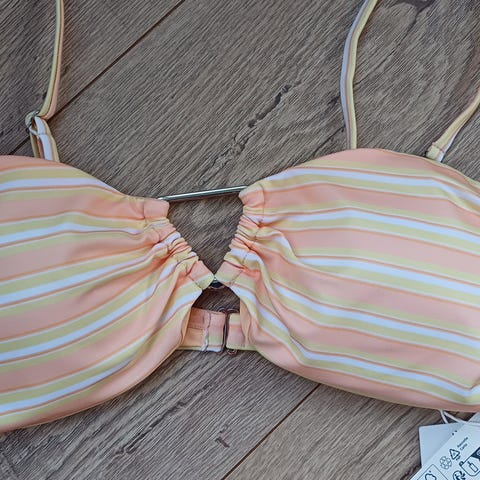 Søt sommertopp og bikinitopp. Kjøpt på Tise men ble dessverre for stort så har ikke brukt. Toppen er i strl L men vil si den passer en M også. Bikinitoppen kan passe s-l.