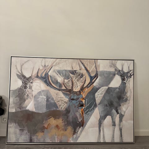 Modern Deer akrylmaleri 120x80 jordfarger med ramme
