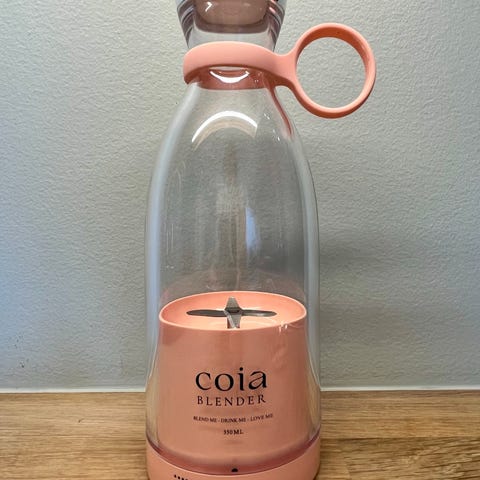 Ny bærbar blender – USB-oppladbar – 500 ml – rosa og hvit.