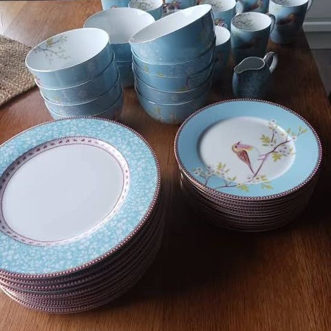 6 stk.Tallerken Pip Porselen 23,5cm Hvit m/gull og blå dekor