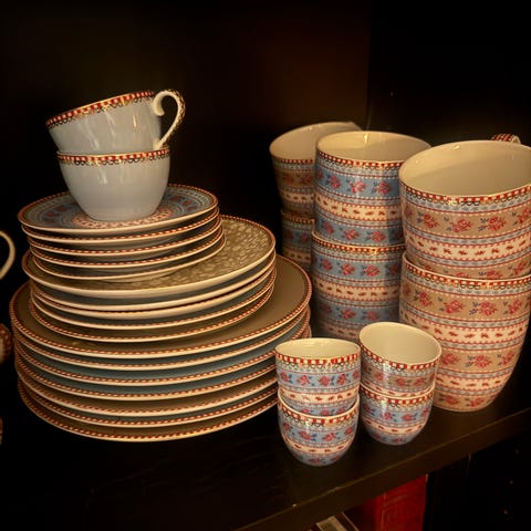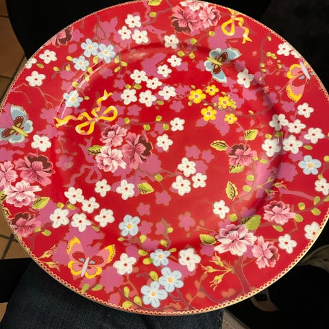 Eske med 6 stk. Tallerken 23,5cm. Lunch / Middag hvit med gull og blå dekor .