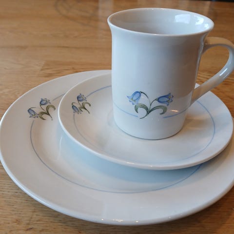 5 kopper, 6 skåler, 5 asjetter.