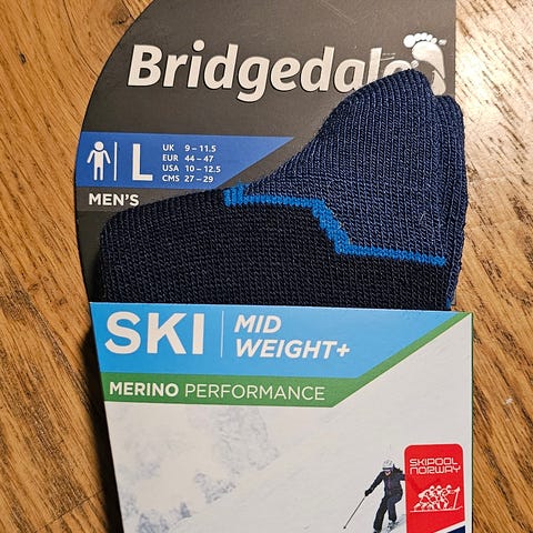 Helt nye alpinsokker fra kvalitetsmerket Bridgedale. Modellen heter Vertige Light, og er ren relativt tynn skisokk i merino- og syntetisk blanding med lav friskjon ppå hæl og foran på leggen. Perfekt for vårskiturer!