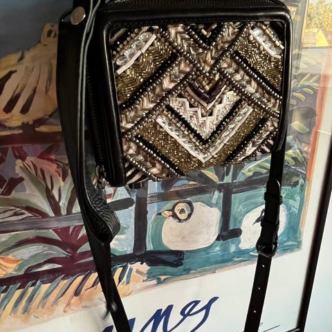 Selger en lekker og flerfarget skulderveske fra Rebecca Minkoff.