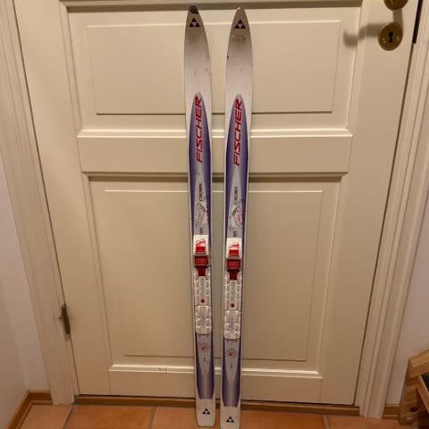 Fischer langrenn/fjell ski. Godt brukt, endel skraper på oppsiden (se bilder). Sålene har løsnet noe i tuppene (se de siste bildene), men det har ikke hatt noe betydning for bruken (kan muligens også limes på nytt, under press, dersom man har det rette utstyret?)