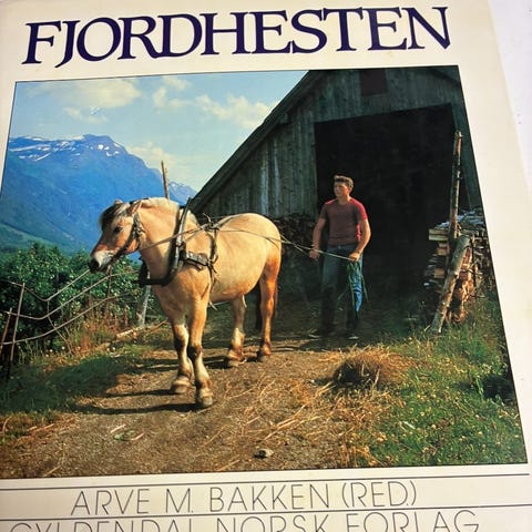 Redaktør: ... 2. opplag. Utgitt i samarbeid med Norges Fjordhestlag, 1987. Innbundet, med vareomslag. Stort format. Bakomslagets øvre kant med enkelte små, svake bretter. Sendes for 300,- + porto 69,- (eller velg Fiks ferdig)