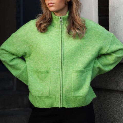 Pent brukt holzweiler tine strikkejakke i en sykt kul grønnfarge.